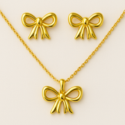 Dainty Bow 18k Gold-Plated Jewelry Set – Non-Tarnish Necklace & Earrings for Women